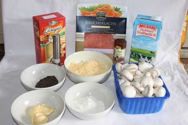 ¿Salmón ahumado y champiñones lasaña (1 / 8 paso)