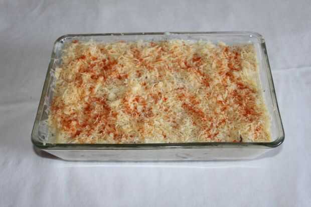 Espolvorear el resto del queso por encima y un poco de polvo de la paprika del polvo sobre ella.