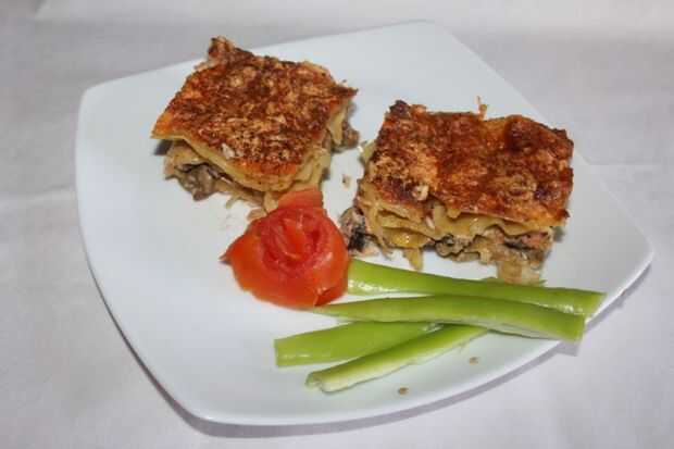 ¿Salmón ahumado y champiñones lasaña (8 / 8 paso)