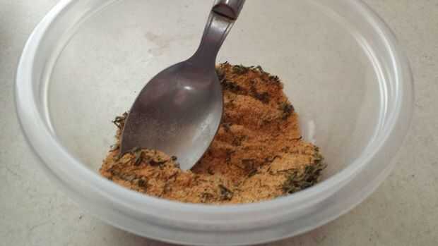 En un tazón pequeño, mezcle sus condimentos. Cepillo 2 cucharaditas de aceite de oliva en las puntas de filetes. Con una cuchara, espolvorear los condimentos en la parte superior de los filetes, luego coloque el recipiente en el horno. Cocer durante 10-12 minutos.