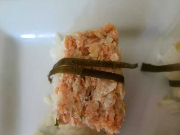 Tomar unos trozos grandes de kombu y cortarlas en rodajas finas. Utilizar éstos para atar para arriba el arroz y el SPAM. Recuerda remojar primero por lo que son maleables. Puede utilizar la salsa tamari de algas he mencionado, o salsa de soja, o incluso agua si es necesario.