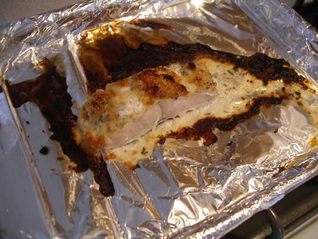 Usted apagar el horno para asar. Sé que algunos hornos tienen una sección inferior especial para asar a la parrilla, pero la mía es en el horno, conjunto independientemente de la rejilla del horno lo más cerca que pueda a la parrilla. debe ser las instrucciones de cocción que vinieron con su trozo de pescado, mina sugiere 5 minutos. Pescado más de una pulgada de espesor unos minutos adicionales puede ser necesaria. La regla de oro para cocinar pescados es cuando fácilmente la puede escama con un tenedor.