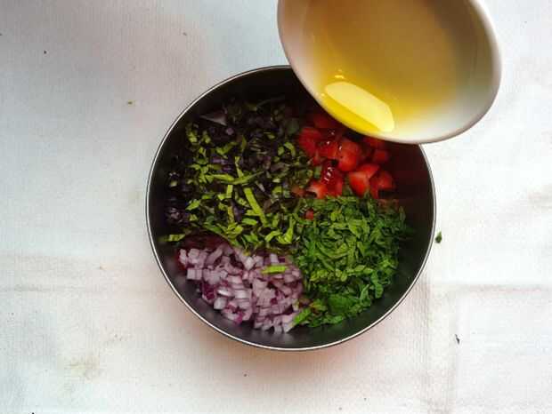 Salmón crujiente con Salsa de albahaca fresa (en menos de 20 minutos) (3 / 4 paso)