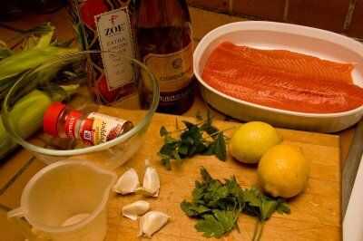 1/4 de taza cada aceite de oliva, blanco vino, zumo de limón (2 limones pequeños)