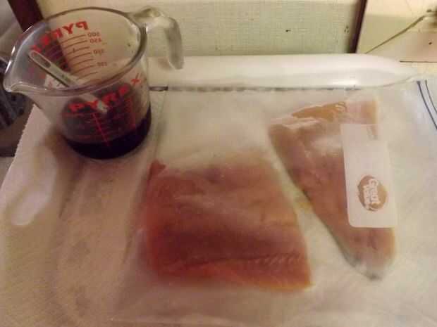 3. Vierta la marinada sobre el salmón; Selle la bolsa y refrigerar por 3 o 4 horas, o hasta que esté listo para usar, invertir de vez en cuando.