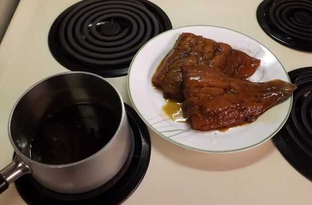 - Retire los filetes de salmón marinados de la bolsa Zip Lock y temporalmente dejes descansar en una placa y verter el adobo de la bolsa y en un cazo pesado.