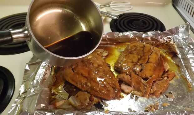 - Tan pronto como sea posible, retirar la piel del salmón fillet(s) y voltearlas. Báñelas con algunos de la marinada caliente esmalte y volver al horno.
