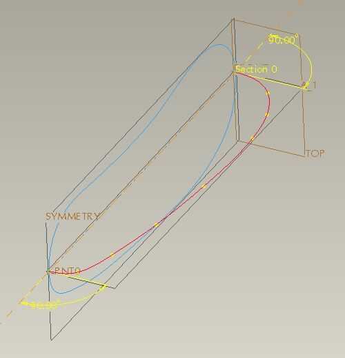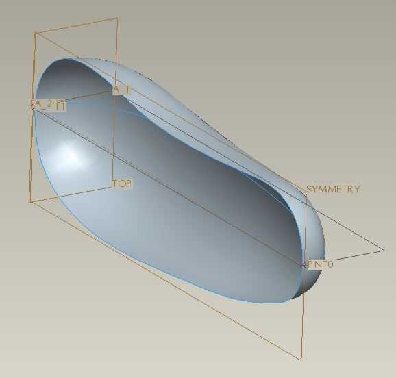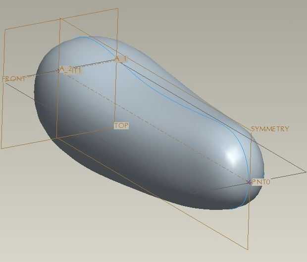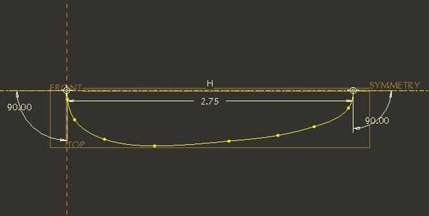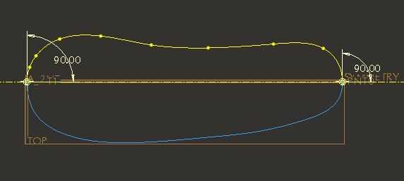 Añadir una tercera curva en el plano que es normal (perpendicular) al plano de simetría. Nuevamente, asegúrese de hacer que los extremos de las curvas normales, por lo que la superficie resultante es tangente.