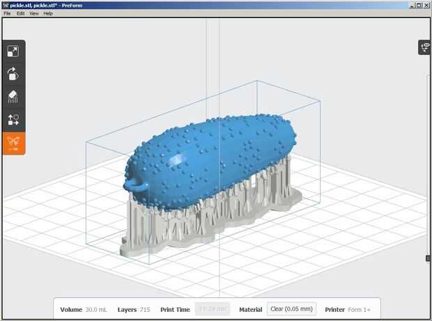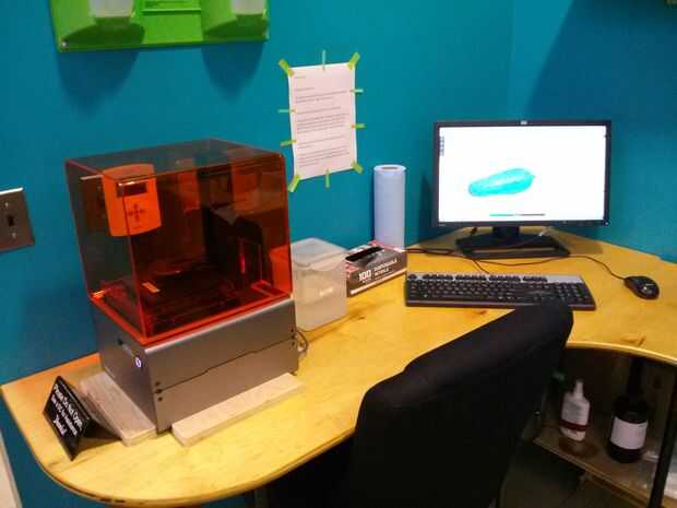 Cuando esté satisfecho con su orientación y estructuras de soporte base, envíe a la impresora 3D. En nuestro caso estamos usando la forma 1 + impresora 3D TechShop Detroit.
