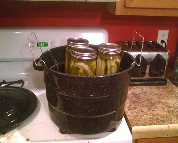 desde que yo era un niño viendo a mi mamá hacer jalea me ha fascinado por enlatado. Cuando llegué a mayores y comenzó enlatado por mi cuenta, mi mamá dictó una antigua receta familiar de encurtidos de pan y mantequilla. La primera tanda que hice fue