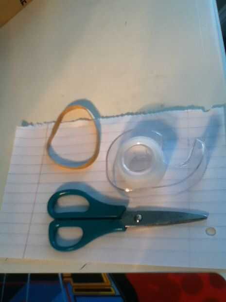 Primero necesitas una media hoja de papel, tijeras, goma y cinta. (Todo lo puedes en un aula de aquí en adelante el arco de aula nombre.)