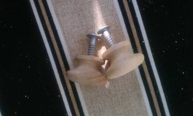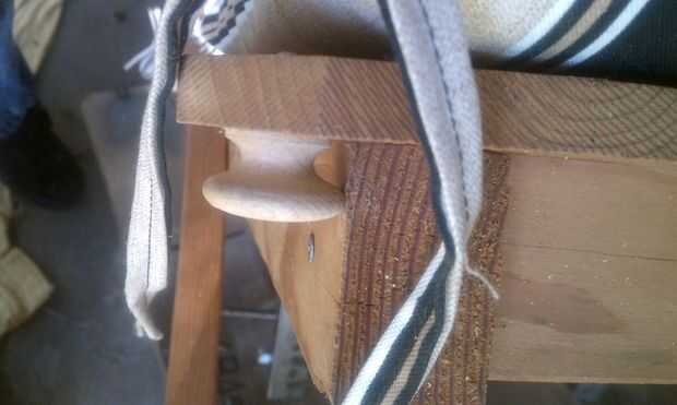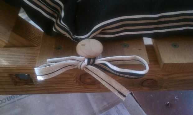 He añadido estos tiradores de cajón de madera para atar el cojín, pero que todavía necesitan ser tratados.