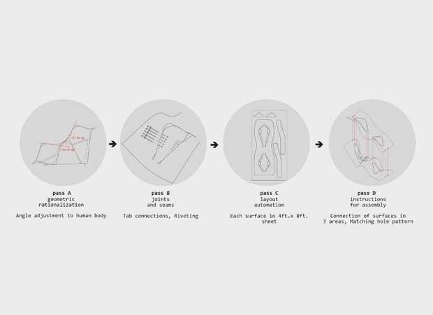 Este proyecto investiga las técnicas de compresión y remachado y pretende implementar en la creación de un salón de la calesa de oficina. Pellizcar puede describirse como el proceso de eliminar una parte de una superficie plana y conectando los bordes del corte hacia fuera de forma, permitiendo que la superficie a por consiguiente de la curva en tres dimensiones. Este proceso parece tener dos beneficios principales: en primer lugar, produce formas intrincadas deuna sola superficie planar, en segundo lugar, crean tres elementos de dimensiones que estructuralmente el estado doblado.