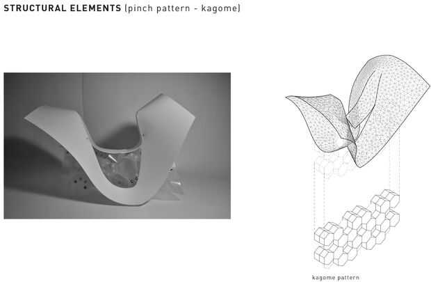 Con la forma general de tres dimensiones patrón estructural basado en una retícula hexagonal.
