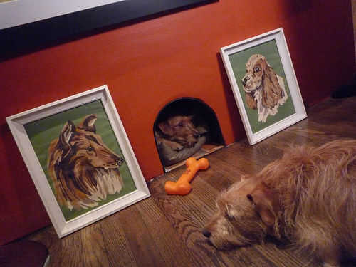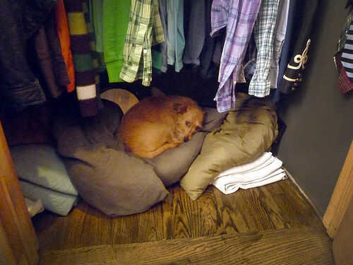 Este proyecto se podía lograr con otros medios de subsistencia, así. Si el único acceso es la puerta del armario, se podría reducir un agujero en la puerta para que pueda cerrar la puerta pero mantener el acceso a la cueva del animal doméstico. Mi perro tenía ya "se trasladó en" al espacio, por lo que no fue difícil introducir el nuevo acceso a él. Un día él estaba usando regularmente. Obviamente si tiene que forzar al perro a utilizar el agujero, usted puede encontrar que son muy reacios a utilizar en el futuro.