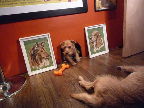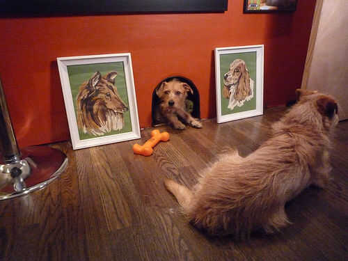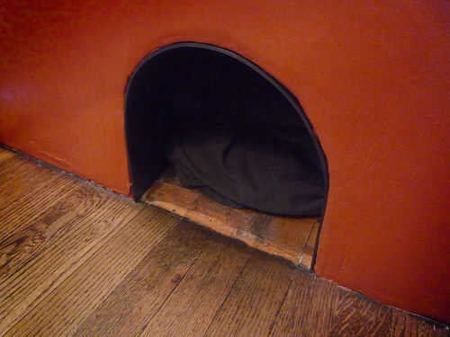 -En primer lugar, verificado que había no hay cables u otras obstrucciones, peligroso o, así como encontrar el centro de punto entre dos postes verticales. -Luego medí mi perro para crear un agujero alto y ancho que sería tan pequeño como podría conseguir lejos con. Comet fácilmente entra y sale, pero tiene que agacharse un poco, que añade a la diversión y el misterio del espacio. Luego dibujé la forma en la pared. He creado una plantilla para la mitad de la forma y volteado para la otra mitad para la simetría del espejo. -Entonces empecé a cortar el yeso con una cuchilla para un corte limpio. Esto podría lograrse también con una sierra de panel de yeso con un poco más de lío. Una vez que el orificio de la protectora, empuje de cualquier aislamiento o quitar. Entonces puede coincidir con la forma en el interior del otro lado de la pared para trazar la forma y cortar el agujero así. -Te tienes que retirar la pared o piso de seguimiento. En mi caso, un 2 x 4 que yo cuidadosamente aserrada hacia fuera. Esto puede ser un poco difícil pero no imposible. -El orificio ahora debe eliminarse totalmente y usted puede probarlo con su perro en caso de que necesite hacer ajustes. Para acabar de la forma del agujero, grabó y mudded el yeso alrededor del borde para crear un aspecto acabado, que fue pintado. También he añadido barniz de piso para la zona ahora expuesta donde la pared se. -El último toque final, es el agujero expuesto la línea. Utilicé una tira mide 1/8" negro plástico de marca de Sintra (tablero de la espuma del PVC), pero podría usarse una variedad de materiales flexibles. Medí la longitud requerida con cartón y el plástico acabado es simplemente encajado en su lugar.