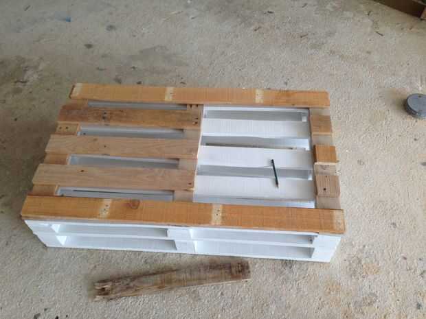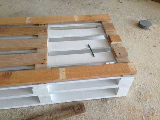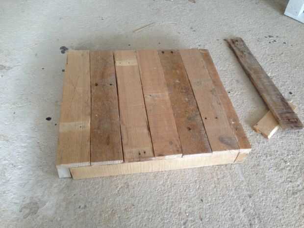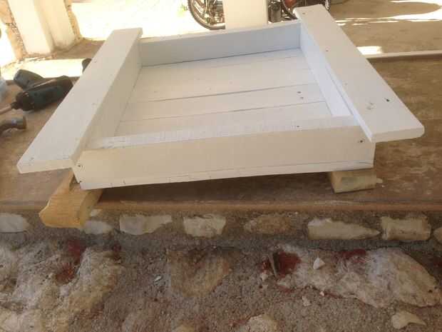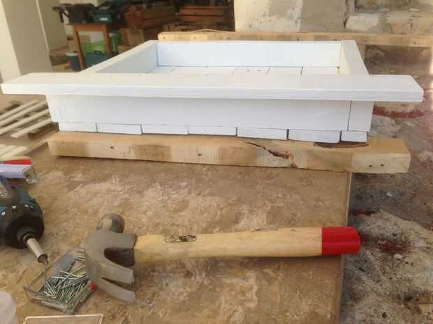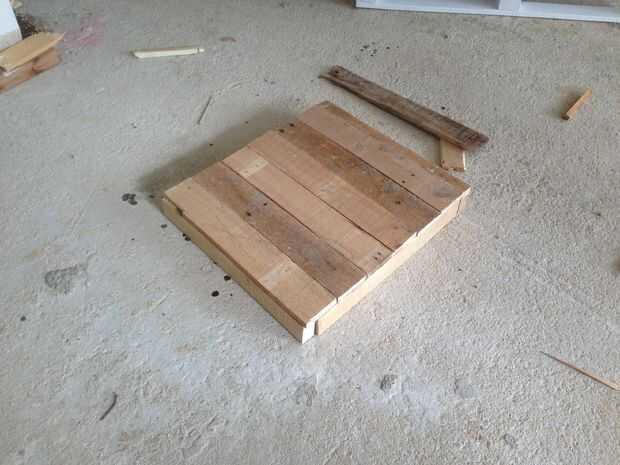 Por lo tanto, la idea de esta mesa fue a hacer un "cajón" en la parte superior y rellenar con piedras de mar, estrellas de mar ancla y otras cosas por lo que se refiere al mar. Hemos decidido que el cajón sea de un lado de la plataforma y no en el centro. Yo desmontar el palet, cortar en las dimensiones correctas y comenzar a diseñar el cajón.