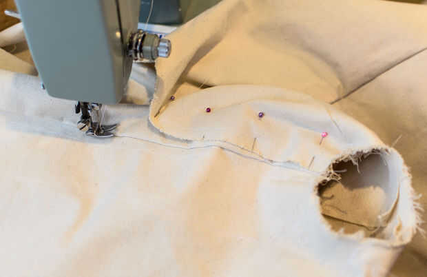 PIN y coser alrededor de 6 pulgadas de la parte superior de los norteamericanos. Esto cierra el círculo en la parte superior.