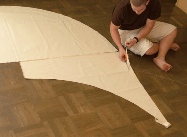 Utilizar el desecho de sus 3 yardas de tela (la tela se corta el semicírculo de) hacer dos aletas triangulares.