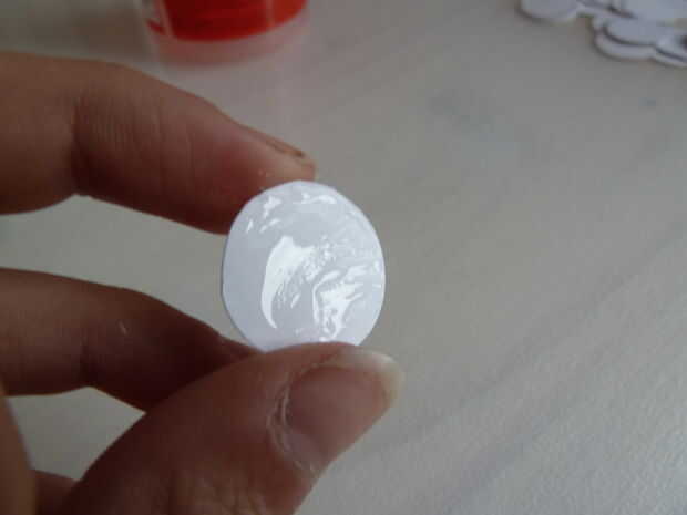 Este paso es muy sencillo, toma el pegamento y los círculos de papel de ocho y pegarlos unos a otros.