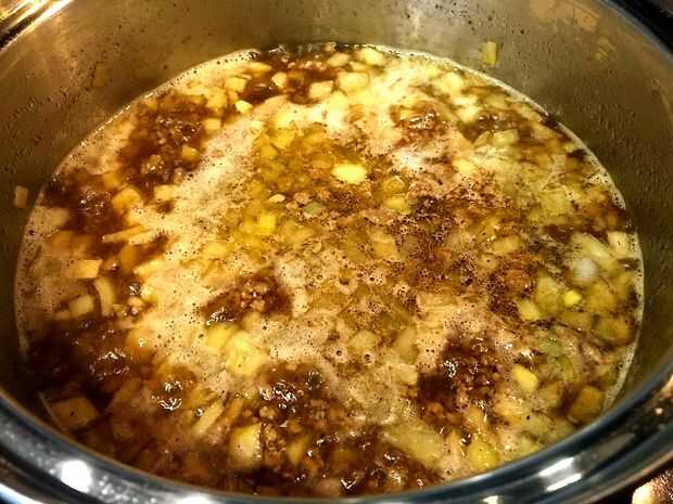 Añadir el caldo y lleve a ebullición.