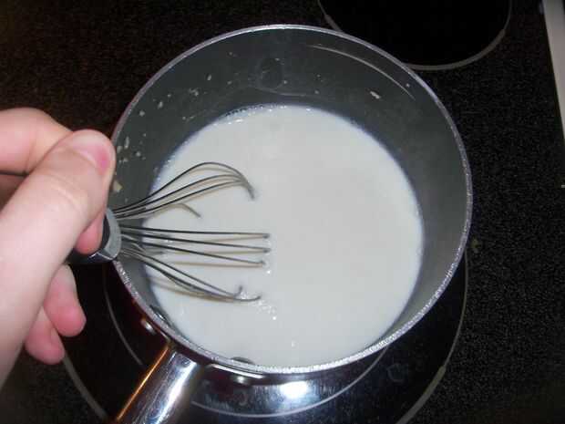 5.) la salsa bechamel ya está terminado y listo para verter encima de las patatas.