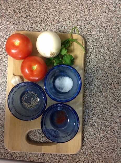 1. Lave todos los vegetales (2 tomates, 1/4 cebolla, 1t cilantro, Chile Jalapeño 1/4)