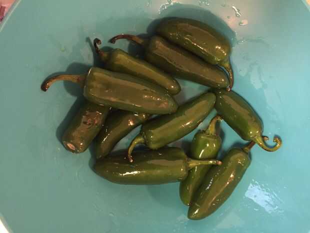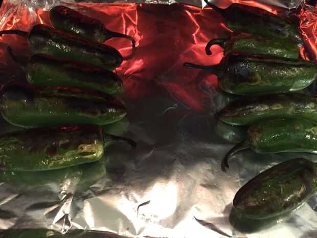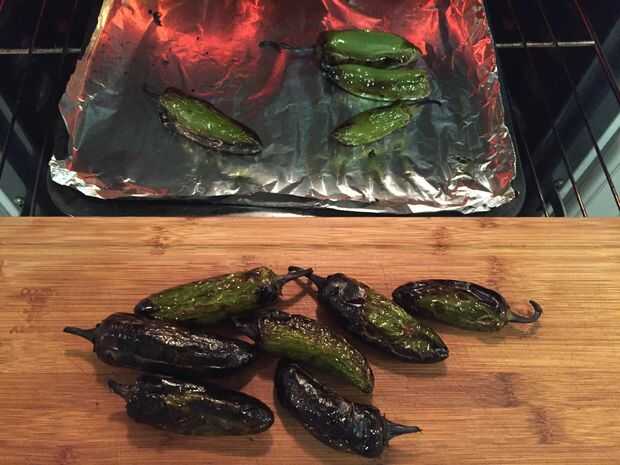 * Utilice una ligera cantidad de aceite de oliva y mezcle y utilice una pinza para colocar el Jalapeño en la bandeja de asar, no volcar aceite sobre pan y pimientos. El aceite adicional podría coger el fuego, lo he hecho antes. No una parte de la oferta, pero usted se encontrará en el dicho horno "uh oh". Sólo Deslice la bandeja hacia la rejilla inferior del horno y soplar hacia fuera.