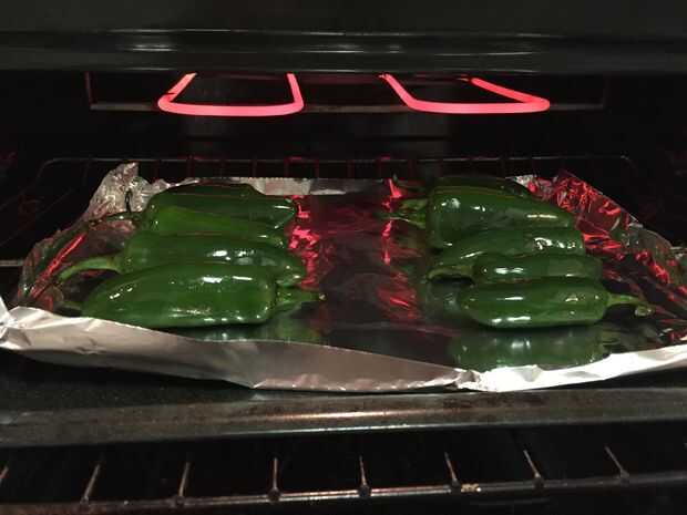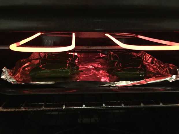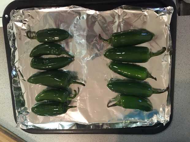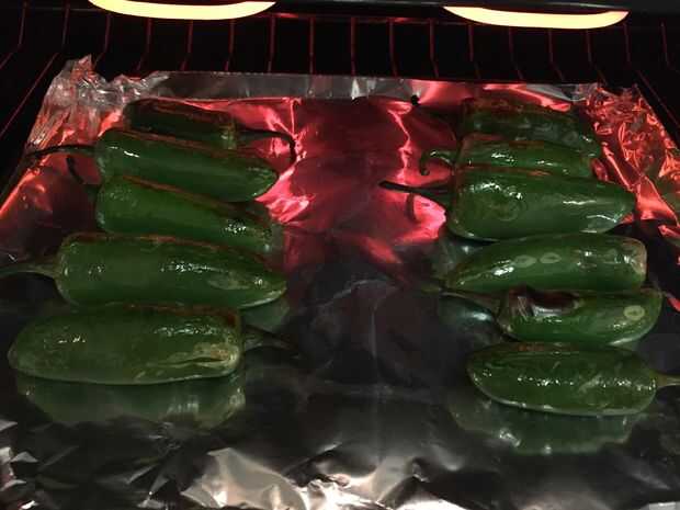 En el horno que desea poner la parrilla hasta la posición más alta y gire el horno para asar. Queremos asar los Jalapeños y ver ese gran oscuro tostado. Se ven casi quemadas, sino que es lo que vamos.