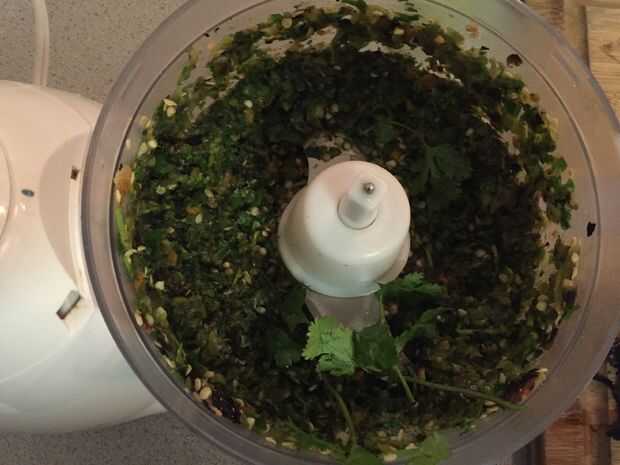 Si utiliza un recipiente y no un procesador de alimentos simplemente picar todos los ingredientes y mezclar.