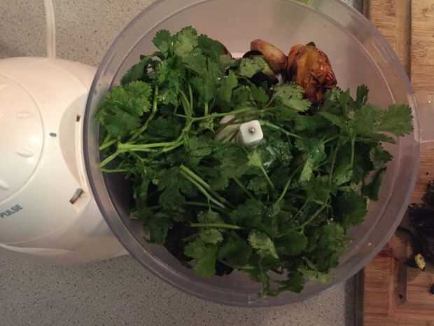Añadir ajo a procesador de alimentos o cortar y añadir al bol