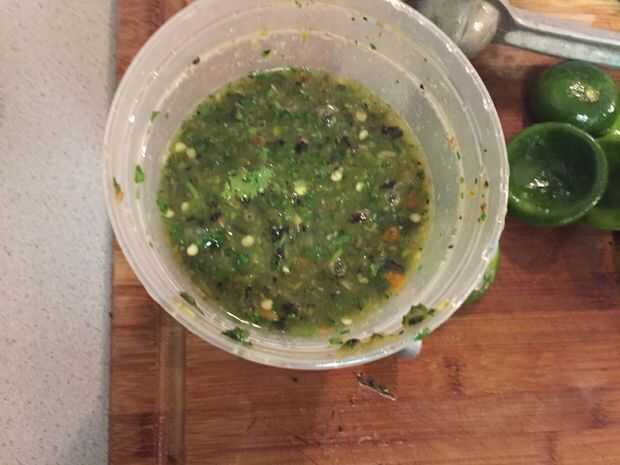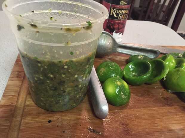Generalmente voy a añadir valor de cales de 7-9 de jugo. Verás que haciendo esto algunas veces cómo usar tu salsa. Me gusta más jugo de limón y un poco de la "pulpa" donde mi esposa cucharas estas cosas sobre todo.