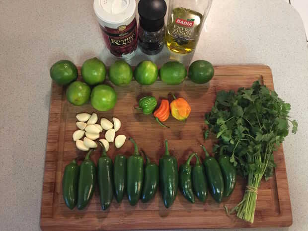 * También los Jalapeños no terriblemente calientes, pero ajustar el calor con los habaneros. 3 la está presionando para mí, mientras mi mujer que llama la "versión de muchacho blanco". Para agregar o quitar según sea necesario. Siempre puede asarlos y añadir más adelante para hacer un poco más caliente. Y rematar con cal si se baja o se siente como usted tiende a ser más pesados en la parte de jugo de limón cuando se utiliza.