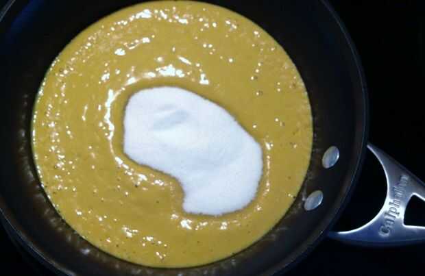 Volver a batir la pasta de harina y agregar a la mezcla de la pimienta, revolver para combinar. Continuar a fuego lento durante 20 minutos, revolviendo regularmente, hasta que se vuelve muy espesa. Deje que la salsa se enfríe y viértala en un envase no reactivo (por ejemplo, un tarro de cristal).