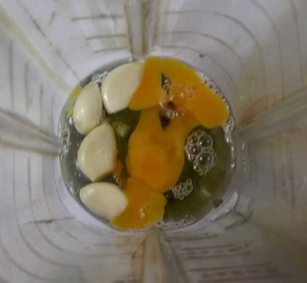 -Teniendo los dientes de ajo, las claras y el huevo entero y el cilantro, encendemos nuestra licuadora en velocidad media-alta y empezamos a añadir un chorro delgado de aceite vegetal, hasta nuestra preparación se espese. Pueden ver el siguiente video para hacerse una idea de cómo se vería. (Perdón por la baja calidad, era de noche y había pésima luz)