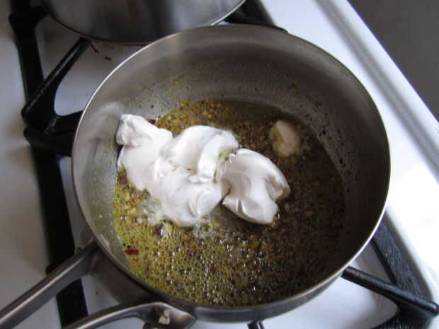 Con deleite soja, espinacas, setas y calabaza vegano Alfredo Sauce
