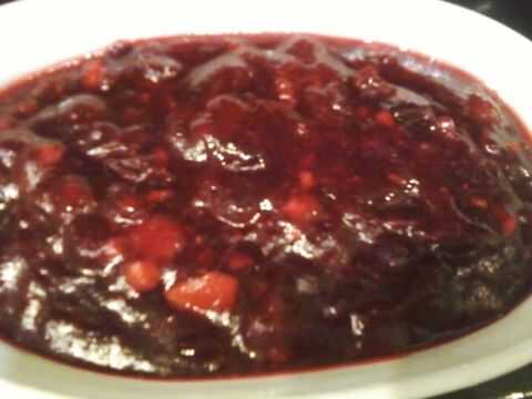 esta es una receta para salsa de arándanos de arándanos frescos. Puede ser hecho en unas 2 horas, o hacer antes de tiempo y entonces servido como plato favorito a cualquier comida de acción de gracias o Navidad.Salsa de arándano rojo de arándanos fre