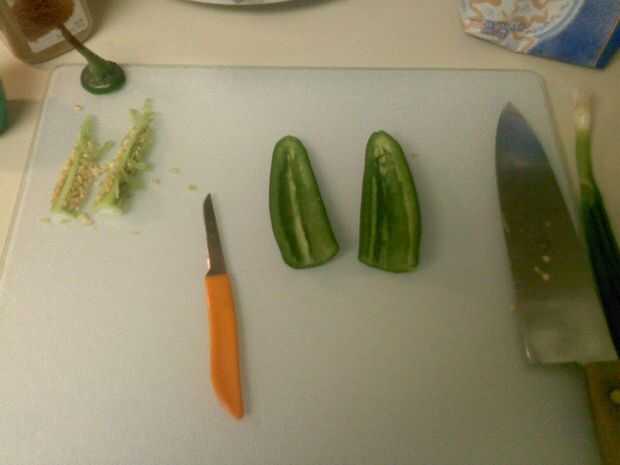Nota: Si no usa gafas, tenga cuidado porque podía sentir el jugo de jalapeño golpear mi rostro mientras pica.