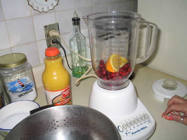 Si la naranja no es lo suficientemente jugosa para permitir que la mezcla se muele, añadir un poco de jugo.