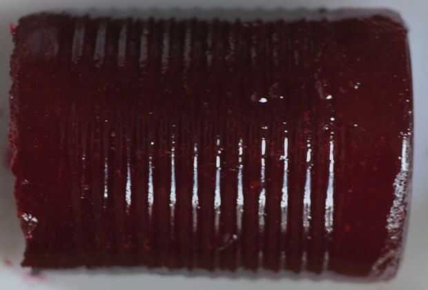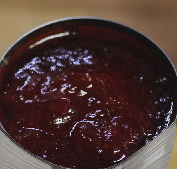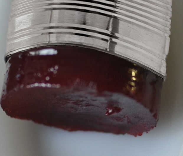 2. una vez que la salsa se haya aflojado, voltear la lata en el plato y dan mueva un poco y un grifo. La salsa de gelatina debe vibración excesiva y sacuda su manera en el plato!
