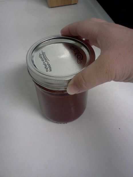 -Lavado de pinta tarro, tapa y anillo en el fregadero limpio con agua jabonosa caliente, enjuague en agua caliente