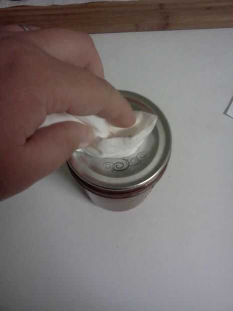 -Utilice una toalla de papel húmeda o toalla de mano limpia y limpiar los lados y las tapas de los tarros (Esto eliminará esas cosas polvo blanco que queda cuando el agua tiene muchos minerales)