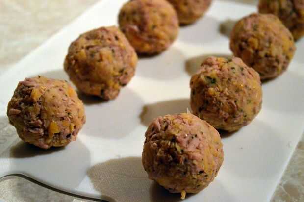 albóndigas de pavo con una sorpresa dentro.Paso 1: Carne de temporada Combinar lo siguiente:Ingredientespavo molido de 2 librasc 1/2 pan rallado (seco los enlatados)2 huevosunos dientes de ajo rallado (al gusto; Utilicé unos 8 dientes grandes)1 cucha