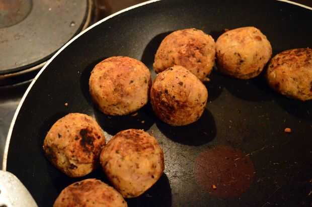 Las albóndigas se están libres de lácteos, sin huevo y sin gluten también! Había condimentada para arriba mi picadillo de pollo orgánico, ellos había servido sobre una cama de verduras de tomate hecha en casa salsa y comió con penne de farro! Ooh sí,