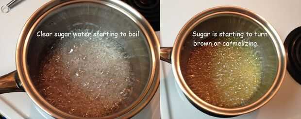 Una vez que usted observe las burbujas de aire que aparecen como los calores de mezcla agua-azúcar arriba, toman la manija y deslizan rápidamente hacia adelante y hacia atrás la cacerola sobre la hornilla. Nota que dije rápidamente, no con fuerza. Como haces esto la mezcla es algo claro en color, pero comenzará a apagar la luz marrón. Es importante que rápidamente Deslice la sartén sobre la hornilla, para que el agua de azúcar no quema y tiene un sabor a quemado.
