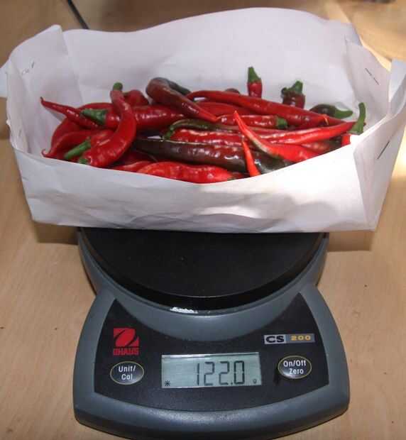 Desde que estoy usando una licuadora de 1 litro para procesar mis chiles, he calculado que necesito por lo menos 125 g de chiles para conseguir la máquina para que funcione correctamente, si no solo tirada la mezcla arriba a los lados de la jarra y la cuchilla hará girar alrededor como un loco mexicano del diablo - créanme que esto es cierto como lo probé! 125g es la cantidad mínima absoluta en una licuadora de 1 litro.