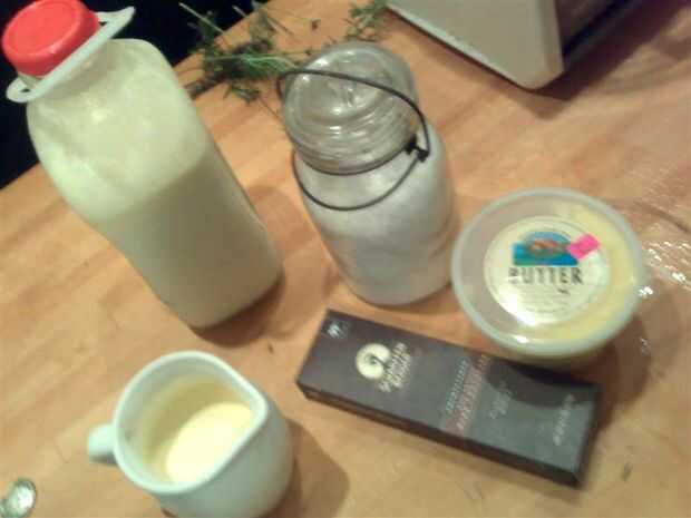 En mi caso, estoy utilizando sabrosa leche cruda, sin pasteurizar, unhomogenized de las vacas que tengo Co en la excelente Finca de ulmaria. Lo que significa que los dos primeros ingredientes son muestras representativas sólo de la parte superior de la botella y el resto de la botella. Si no tienes una buena granja lechera local alrededor de apoyar, también podría utilizar una taza de media crema.