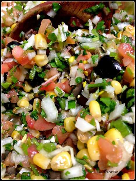 Abrir la lata de aceitunas y drenar la mayoría del agua (he añadido un poco en mi salsa para el sabor). Aceitunas Smash con el lado plano del cuchillo y cortar en piezas ásperas o sólo podrían aplastar las aceitunas todo en tus manos. Añadir al colinabo. Escurra la lata de maíz y agregar a la mezcla.