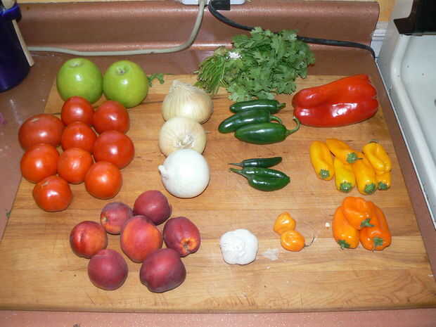 • varios finamente picados pimientos picantes (utilicé 3 habaneros orange, 6 serranos y 4 jalapeños y está en el lado caliente de mi esposa y un poco demasiado suave para mí... Ah, el arte de compromiso... nadie es feliz!)