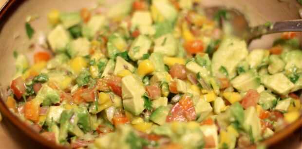 Esta ensalada refrescante podría ser comida para el desayuno, comida o postre!Es tan versátil que se puede utilizar como una Salsa sobre la carne a la parrilla.Antioxidantes coloridos cargará tu energía con esta sorprendente mezcla de verduras, fruta